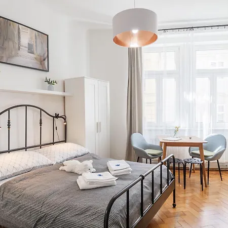 Enhederne i Bright Downtown Studio ferielejlighed har kaffemaskiner/tekedler og køkkenudstyr. Beliggende inden for 5 minutters gågang fra Mustek metrostation.